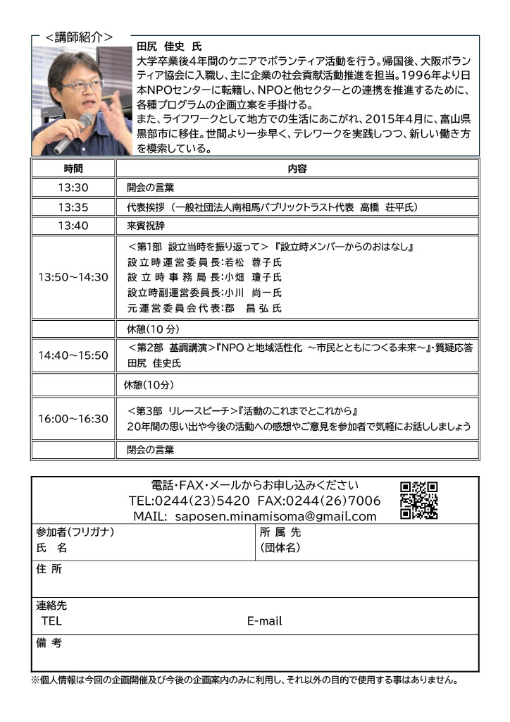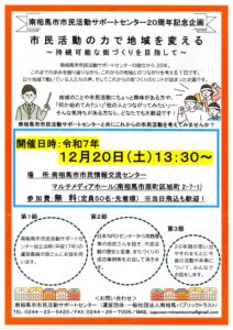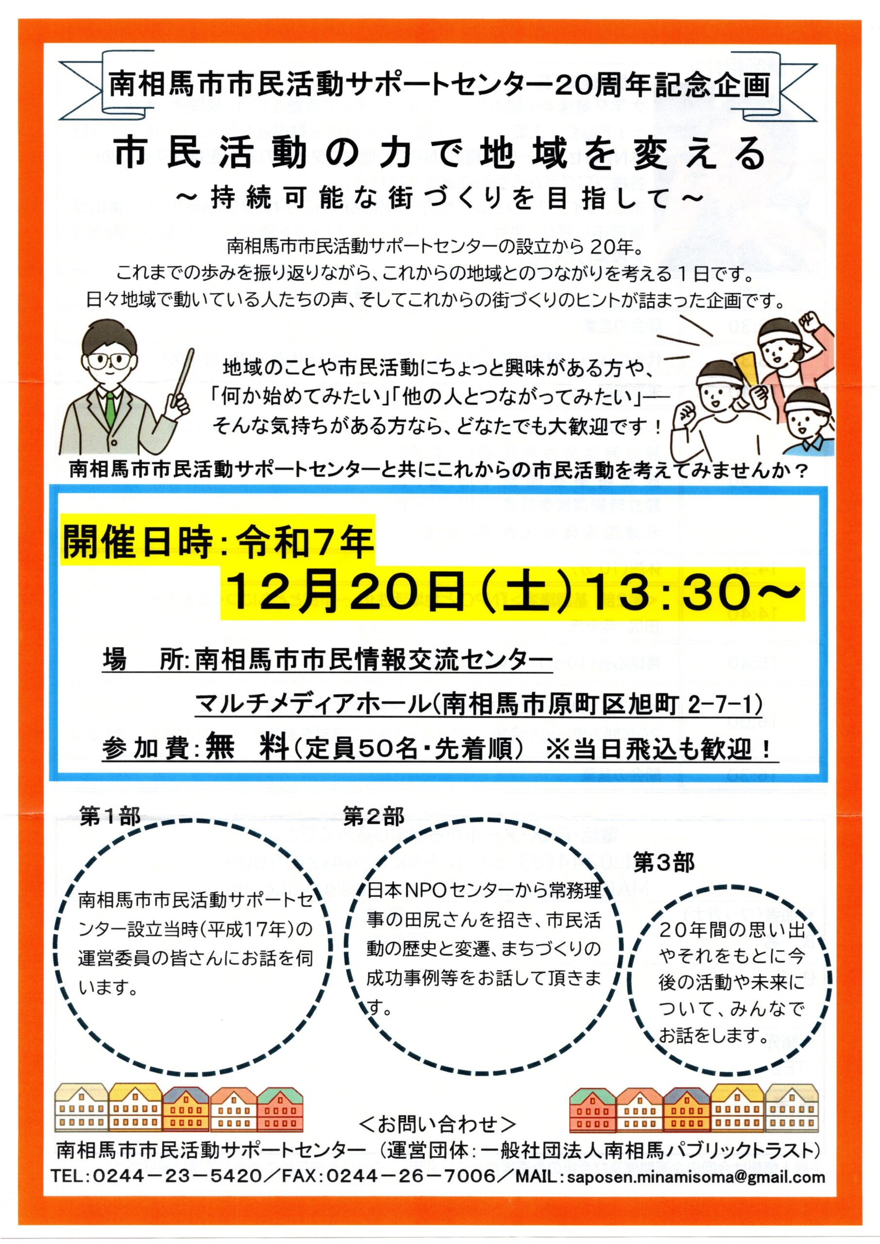 南相馬市市民活動サポートセンター20周年記念企画「市民活動の力で地域を変える ~持続可能な街づくりを目指して~」