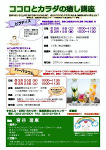※「ココロとカラダの癒し講座①」は2月9日開催です。