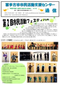 喜多方市市民活動支援センター通信 平成27年度第3号(Vol.10)
